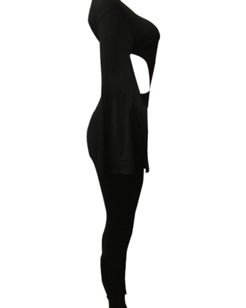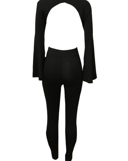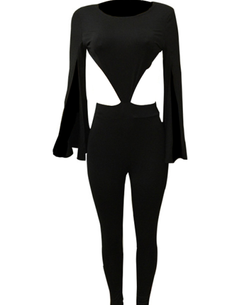 Sexy Round Neck Backless Black Polyester One-piece Jumpsuits