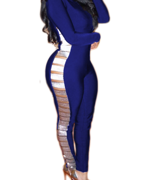 Sexy Round Neck Hollow-out Blue Polyester Skinny One-piece Jumpsuits