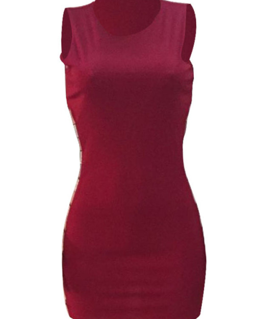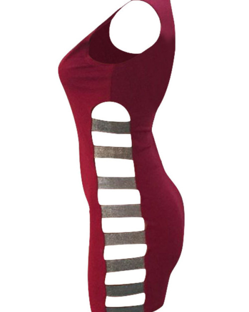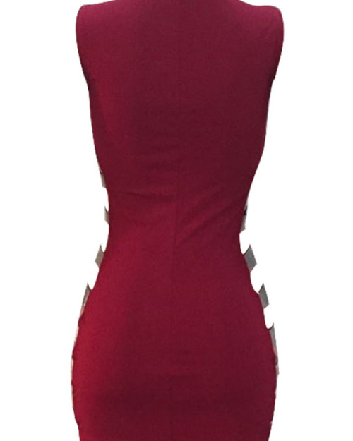 Sexy Round Neck Hollow-out Wine Red Healthy Fabric Sheath Mini Dress