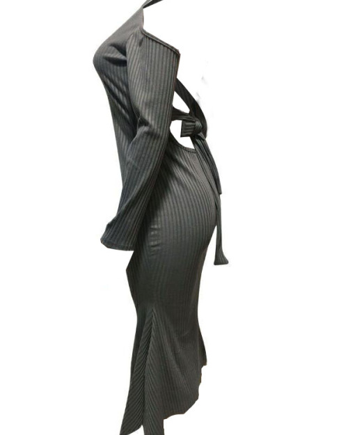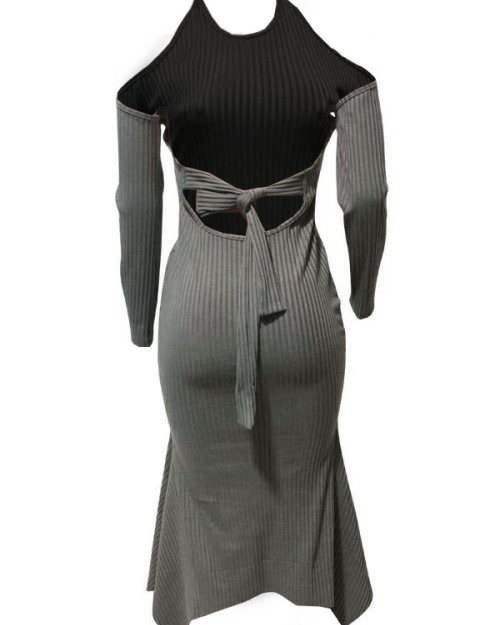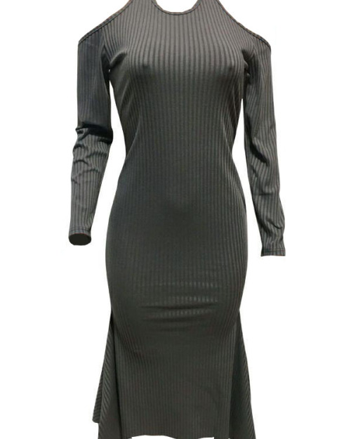 Sexy Round Neck Irregular Hems Hollow-out Grey Cotton Blend Mid Calf Dress