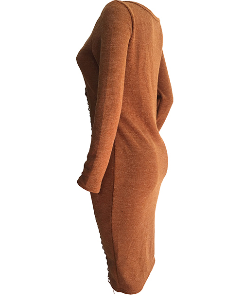 Sexy Round Neck Lace-up Brown Polyester Sheath Mid Calf Dress