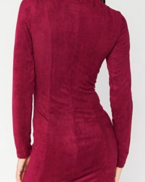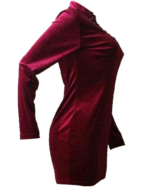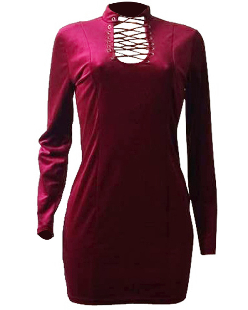 Sexy Round Neck Lace-up Hollow-out Wine Red Velvet Mini Dress