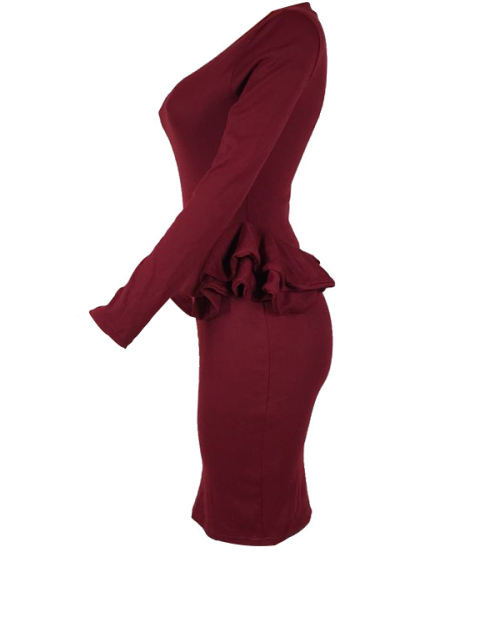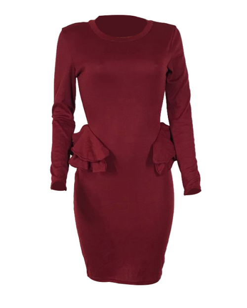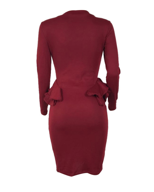 Sexy Round Neck Patchwork Wine Red Polyester Knee Length Dress