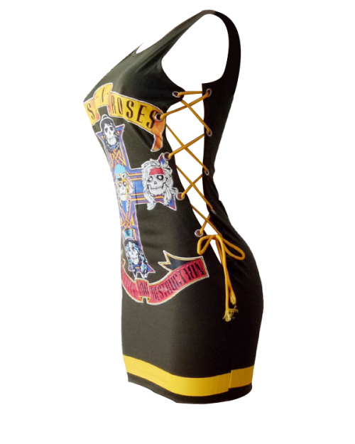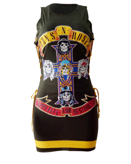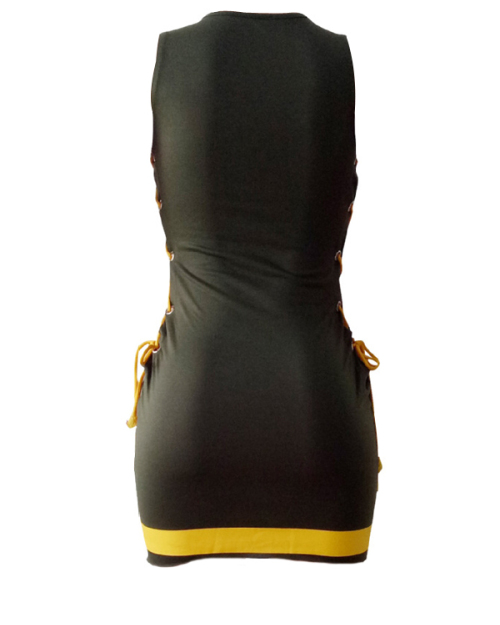 Sexy Round Neck Printed Lace-up Hollow-out Cotton Blend Sheath Mini Dress
