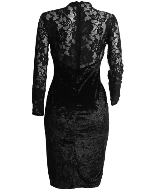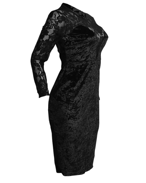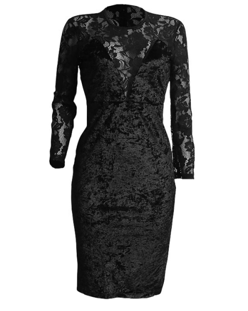 Sexy Round Neck See-Through Black Velvet Knee Length Dress