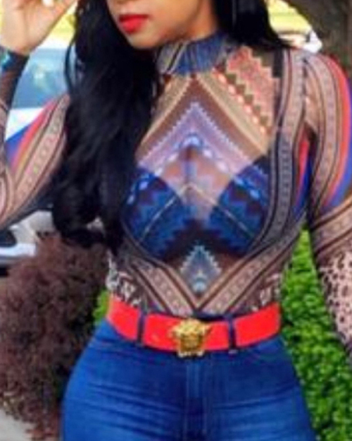 Sexy Round Neck See-Through Shirts