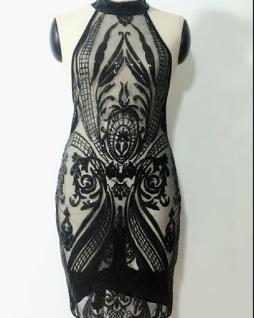 Sexy Round Neck Sequined Decorative Black Polyester Sheath Knee Length Dress(Without Lining)