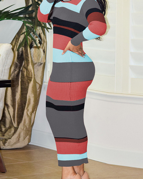 Sexy Round Neck Striped Patchwork Grey Polyester Ankle Length Dress  Sexy Round Neck Striped Patchwork Grey Polyester Ankle Length Dress  Sexy Round Neck Striped Patchwork Grey Polyester Ankle Length Dress