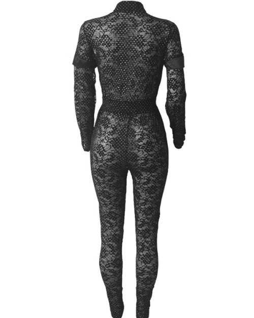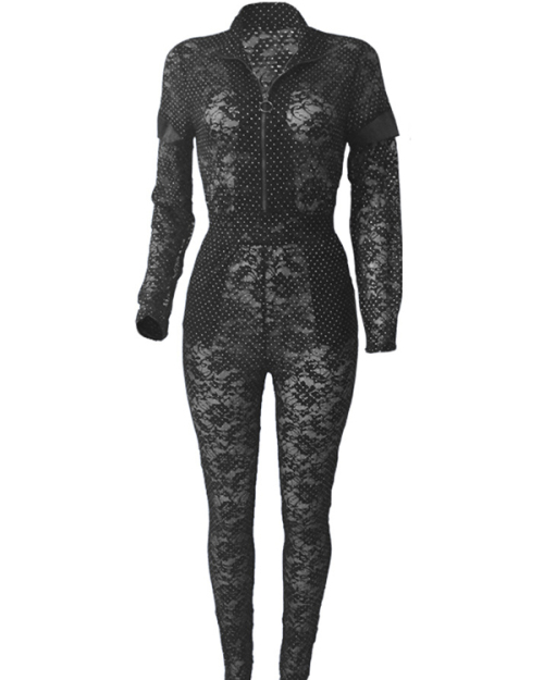 Sexy See-Through Black Bud Silk One-piece Jumpsuits