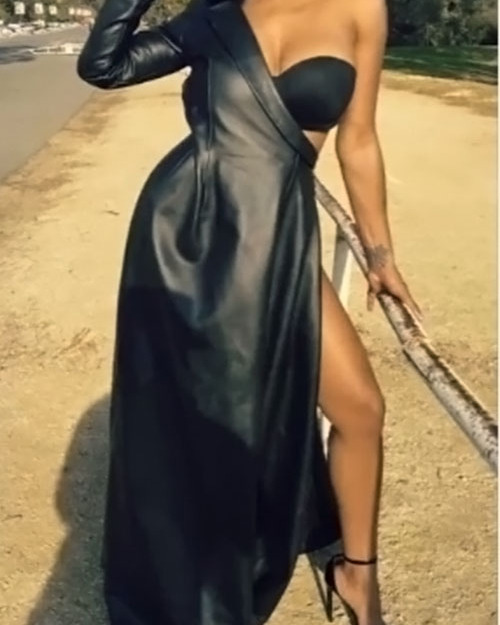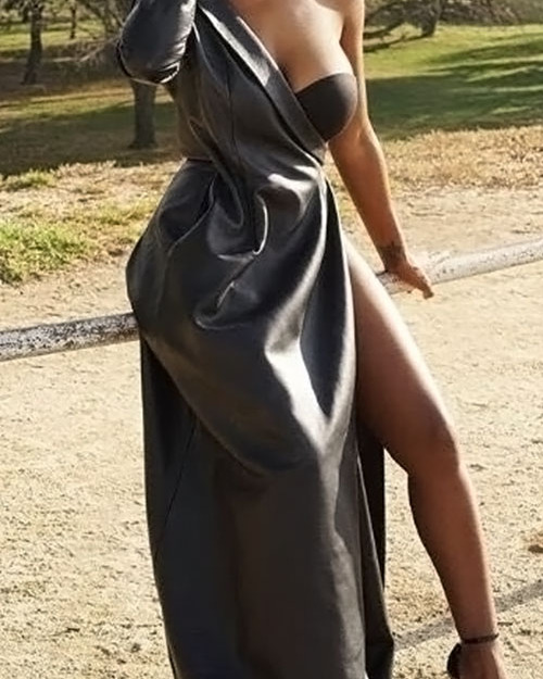 Sexy Show A Shoulder Asymmetrical Design Black PU Ankle Length Dress