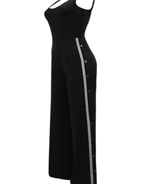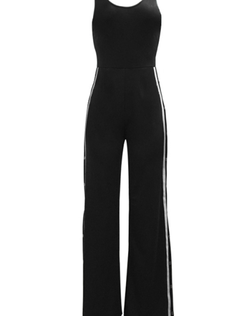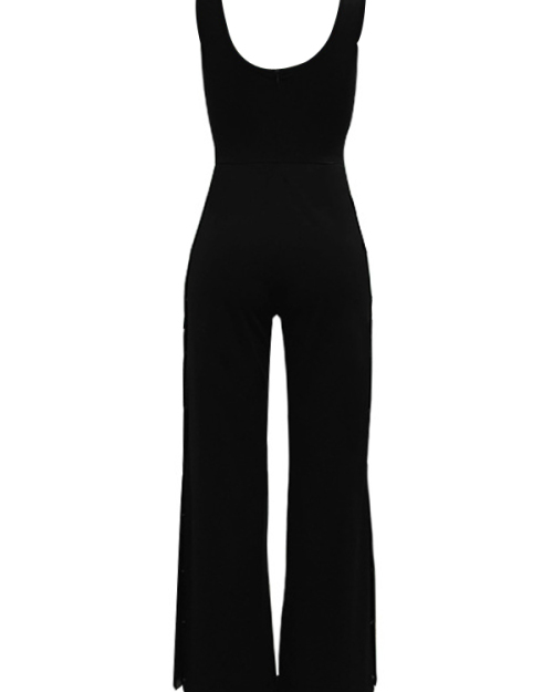 Sexy Side Split Black Polyester One-piece Jumpsuits