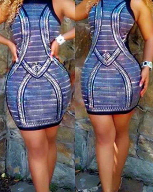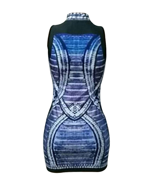 Sexy Sleeveless Printed Polyester Sheath Mini Dress