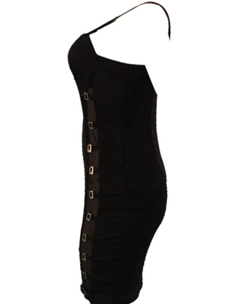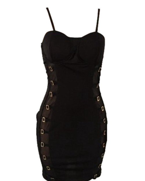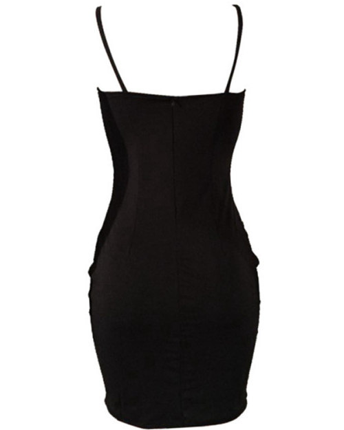 Sexy Spaghetti Strap See-Through Black Polyester Knee Length Dresses