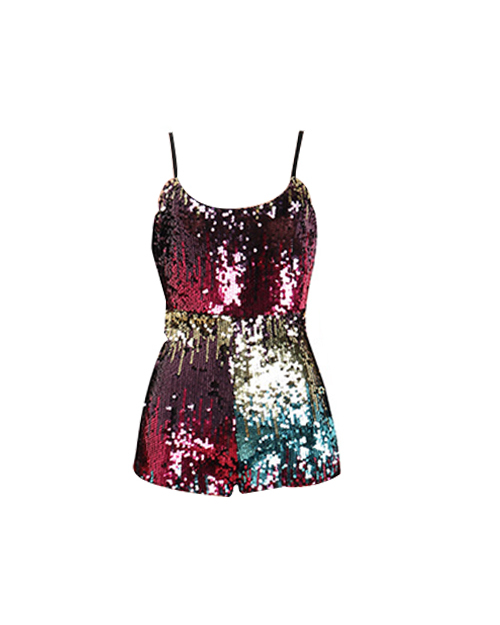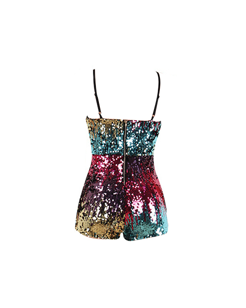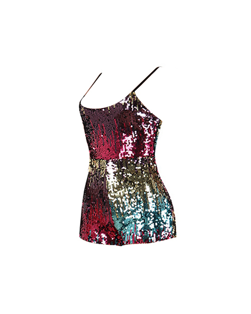 Sexy Spaghetti Strap Sleeveless Gradient Sequins Decoration Polyester Two-piece Shorts Set