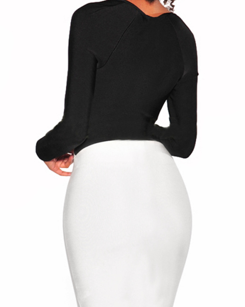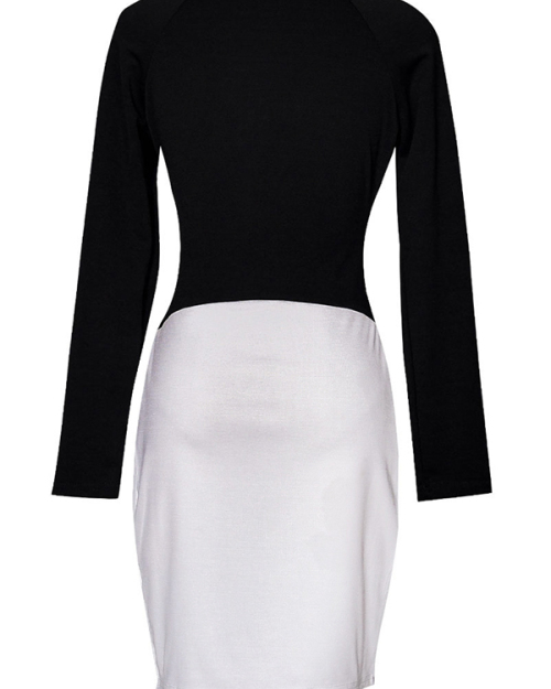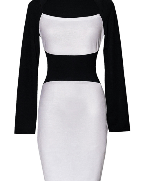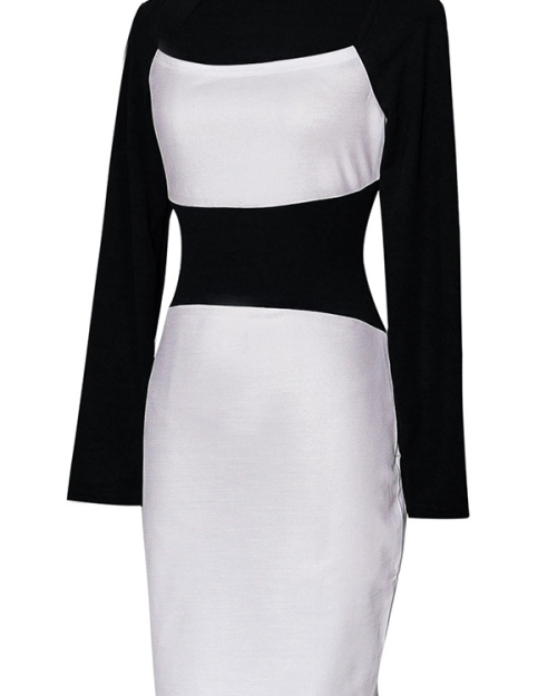 Sexy Square Neck Patchwork White Polyester Mini Dress