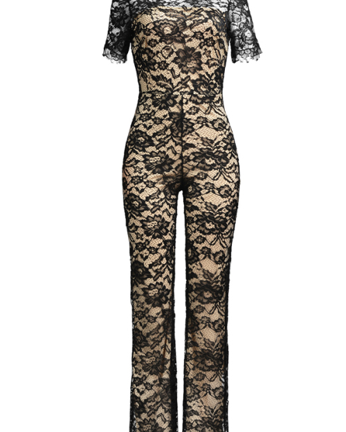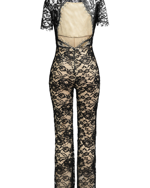 Sexy Stand Collar Hollow-out Black Bud Silk One-piece Jumpsuits