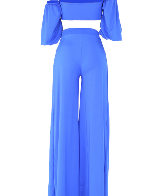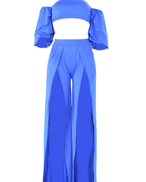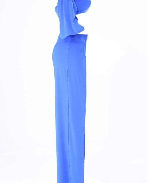Sexy Strapless High Slit Blue Qmilch Two-piece Pants Set