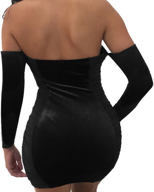 Sexy Strapless Lace-up Hollow-out Black Polyester Mini Dress