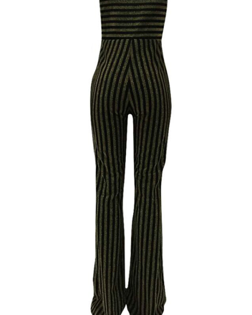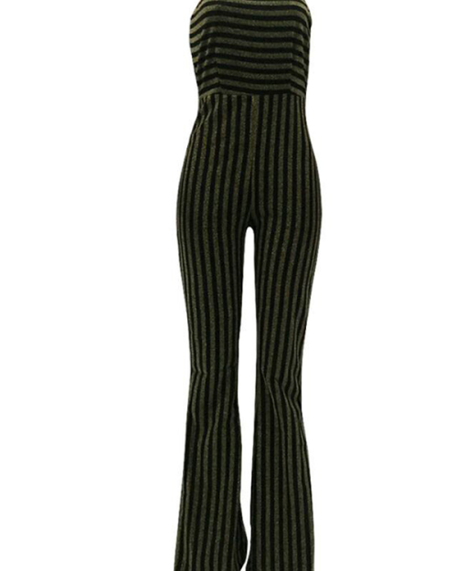 Sexy Strapless Striped Green Polyester One-piece Jumpsuits