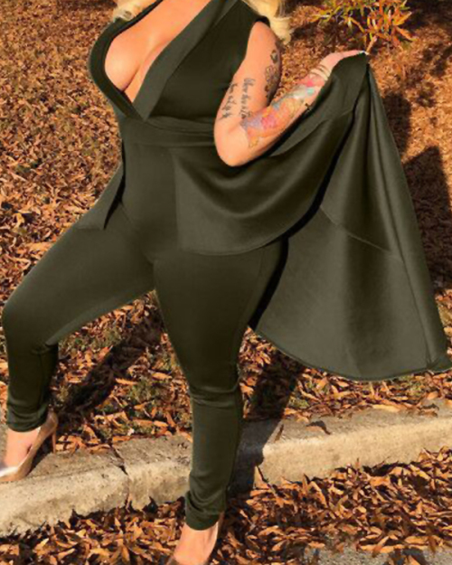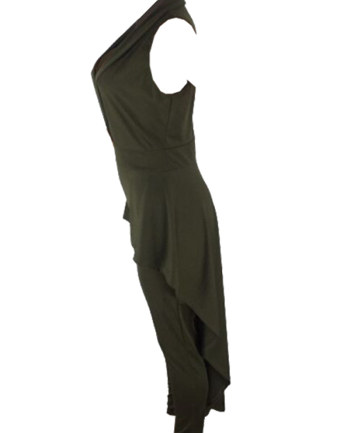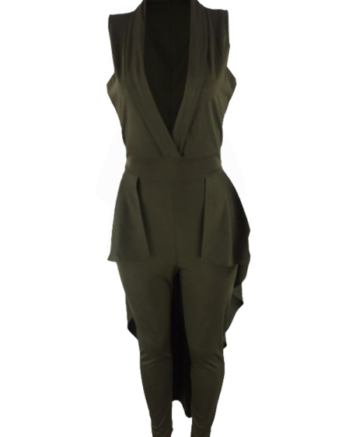Sexy Turndown Collar Falbala Hems Design Army Green Polyester One-piece Jumpsuits