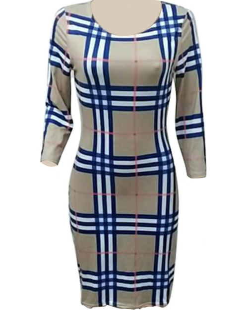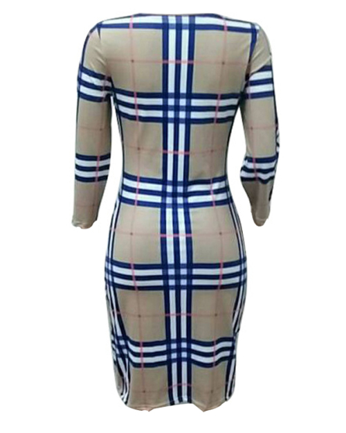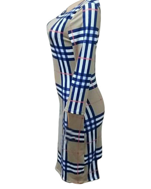 Sexy Turndown Collar Lace-up Grid Printed Blue Polyester Mini Dress