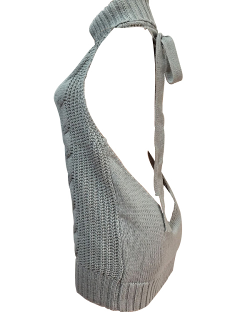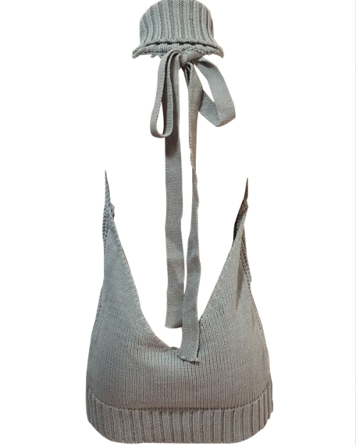 Sexy Turtleneck Backless Grey Knitting Mini Dress