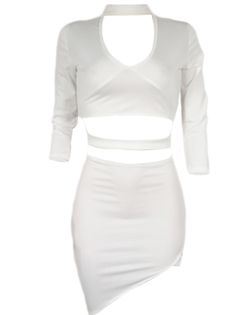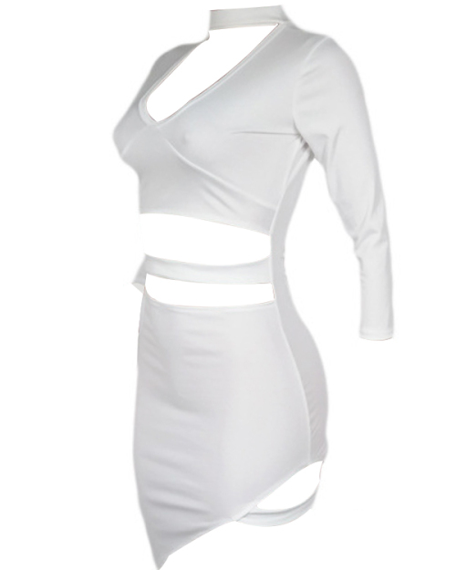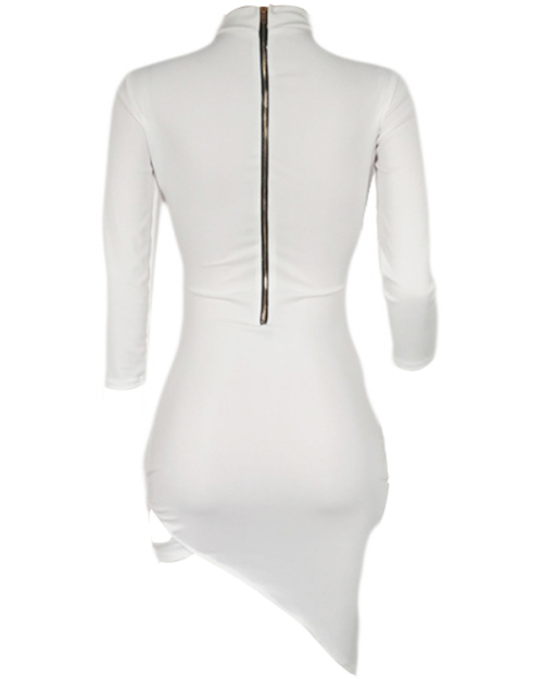 Sexy Turtleneck Hollow-out White Polyester Mini Dress