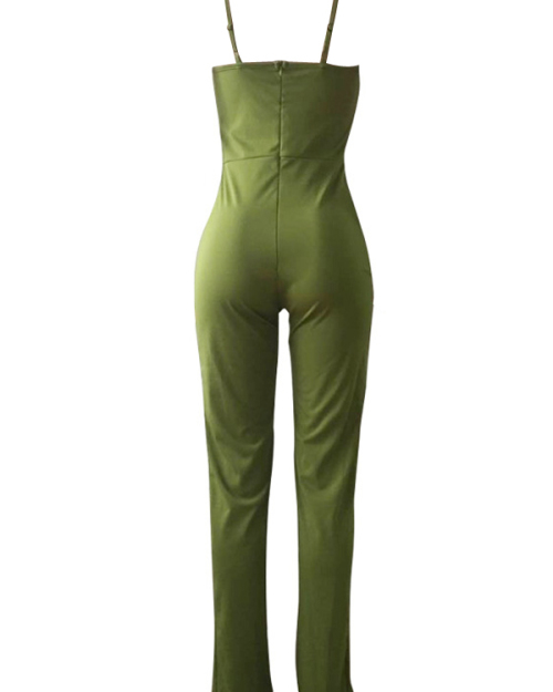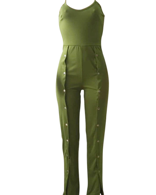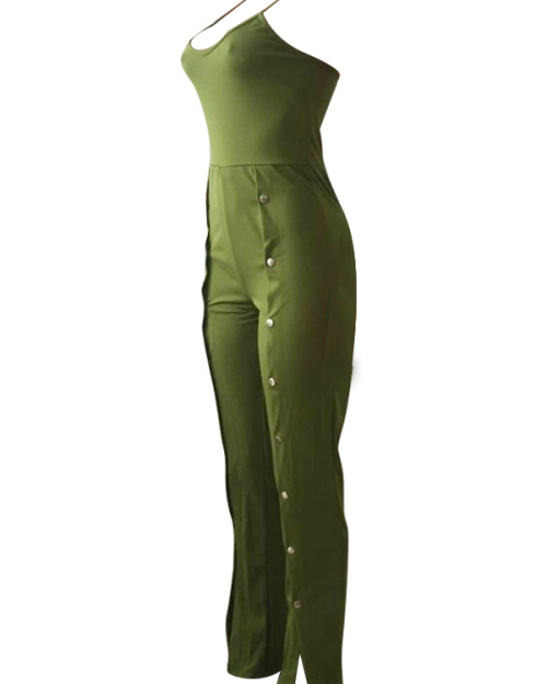 Sexy U Neck Buttoned Design Green Polyester One-piece Jumpsuits