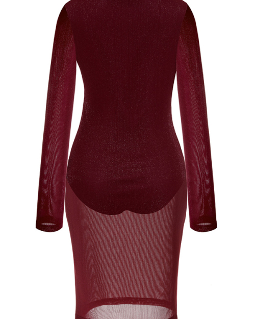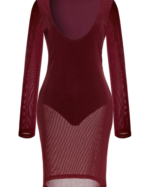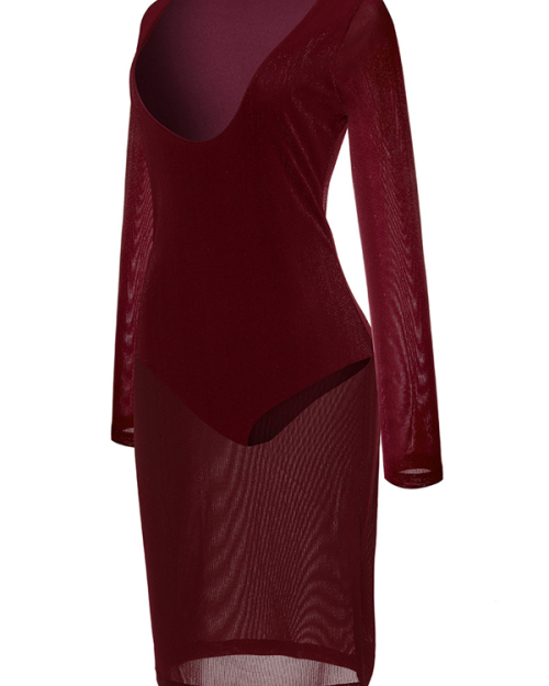 Sexy U Neck See-Through Wine Red Polyester Knee Length Dress