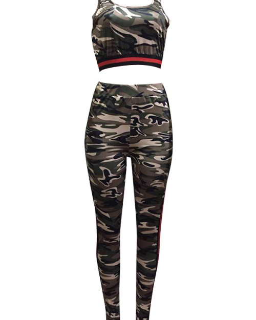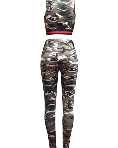 Sexy U-shaped Camouflage Printed Milk Fiber Two-piece Pants Set