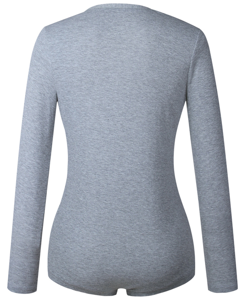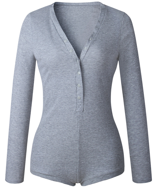 Sexy V Neck Buttons Design Grey Cotton Blends One-piece Skinny Jumpsuits