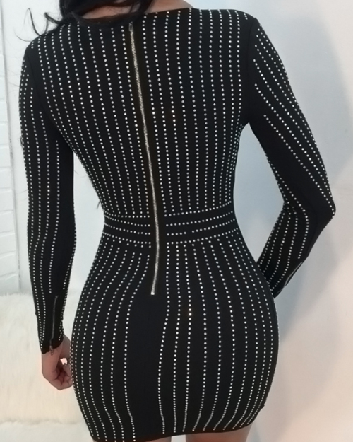 Sexy V Neck Dots Design Black Polyester Sheath Mini Dress