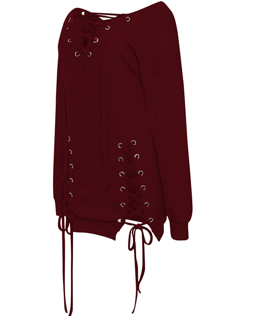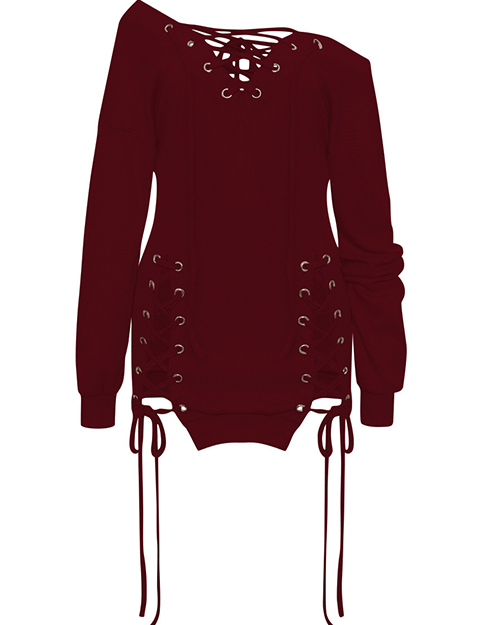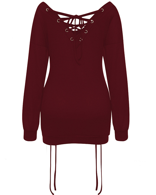 Sexy V Neck Eyelets Design Lace-up Wine Red Polyester Mini Dress