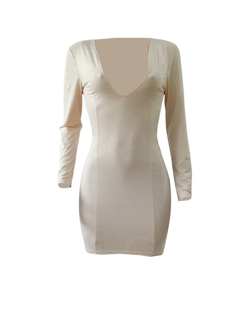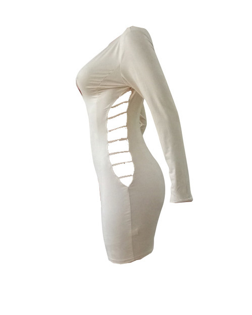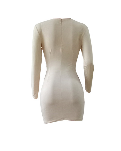 Sexy V Neck Hollow-out Beige Polyester Sheath Mini Dress