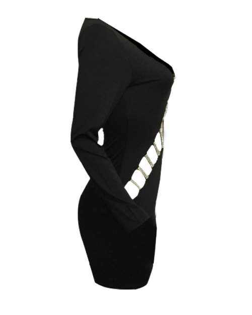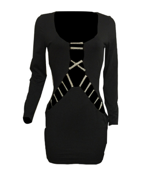 Sexy V Neck Hollow-out Black Milk Fiber Sheath Mini Dress