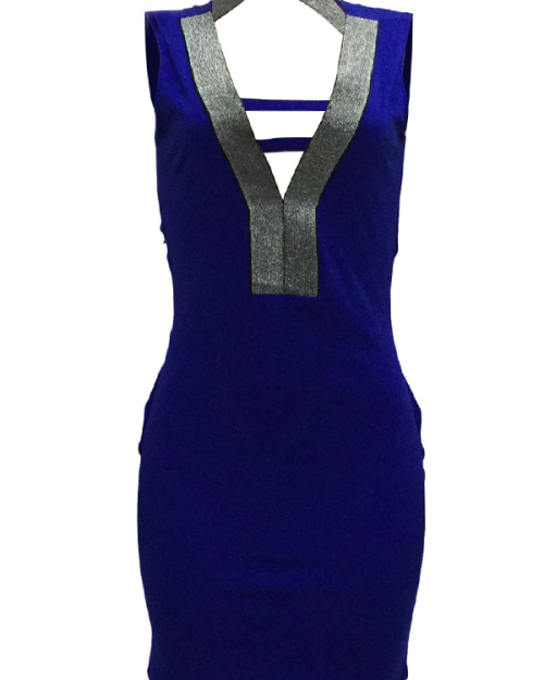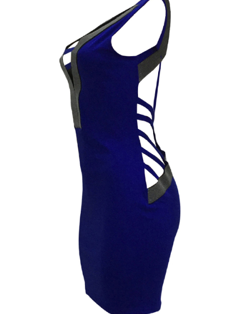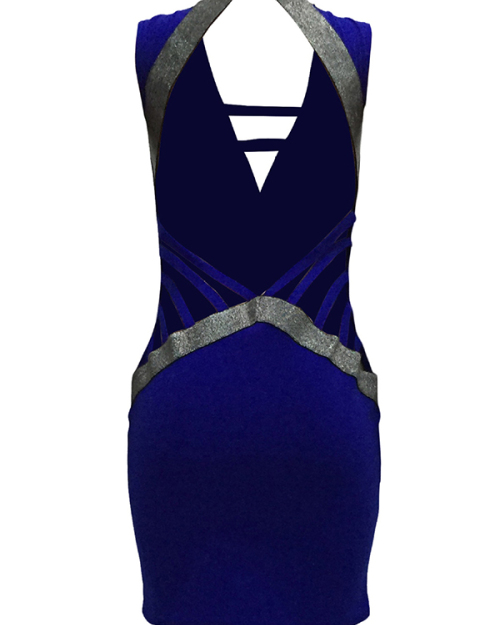 Sexy V Neck Hollow-out Blue Polyester Sheath Mini Dress
