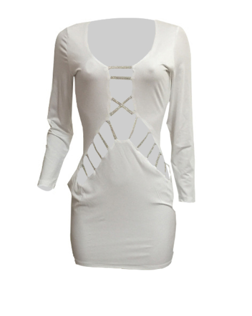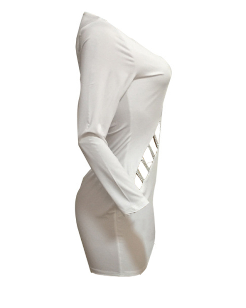 Sexy V Neck Hollow-out White Milk Fiber Sheath Mini Dress