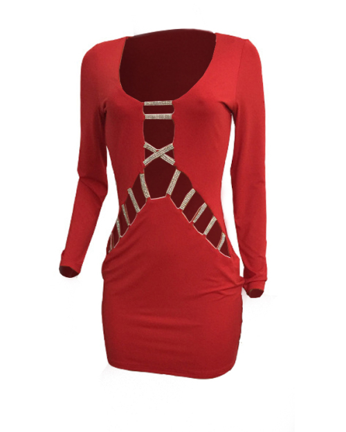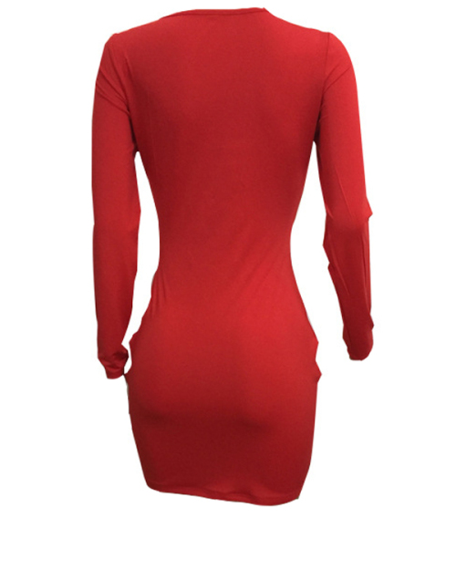 Sexy V Neck Hollow-out Wine Red Milk Fiber Sheath Mini Dress