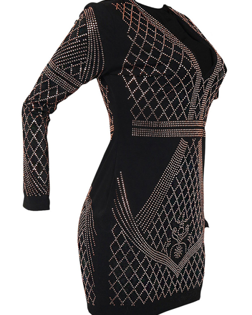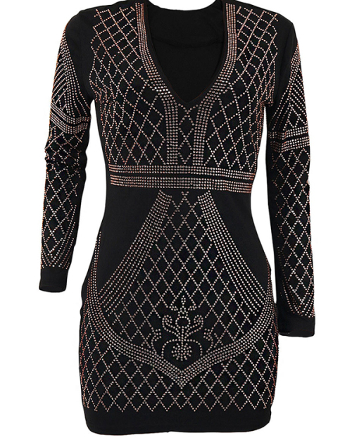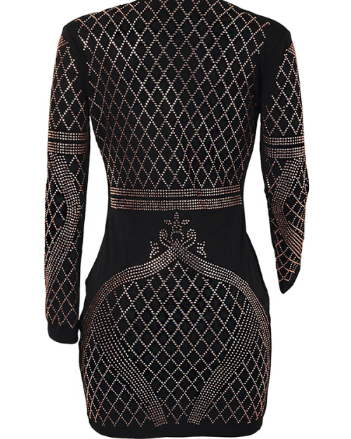 Sexy V Neck Hot Drilling Decorative Black Healthy Fabric Mini Dress