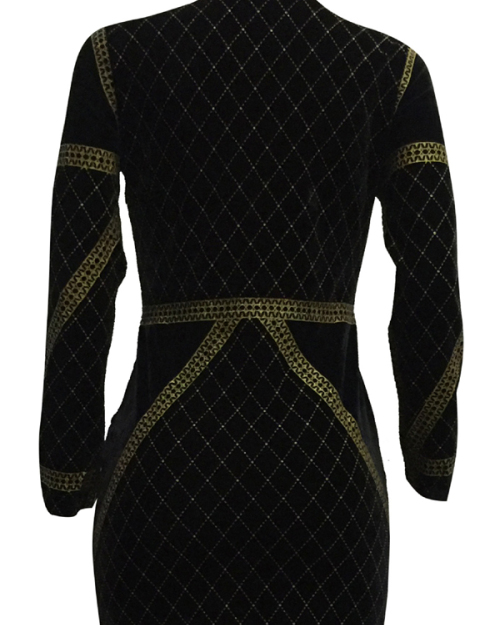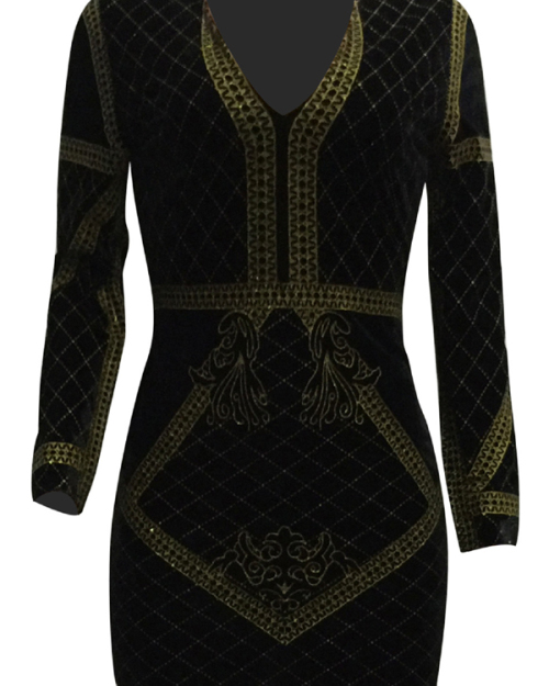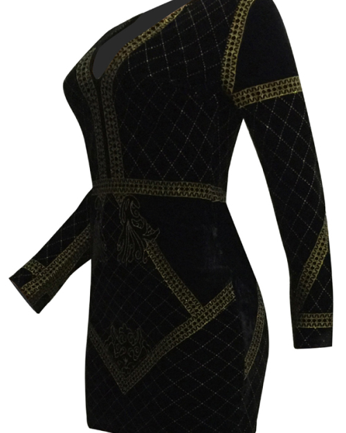 Sexy V Neck Hot Stamping Craft Gold Velvet Sheath Mini Dress