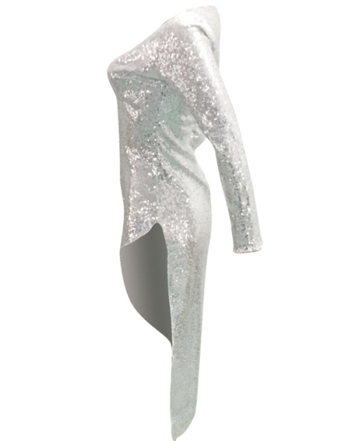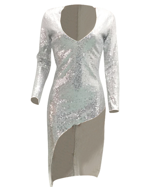 Sexy V Neck Irregular Hems White Polyester Mid Calf Dress