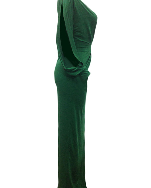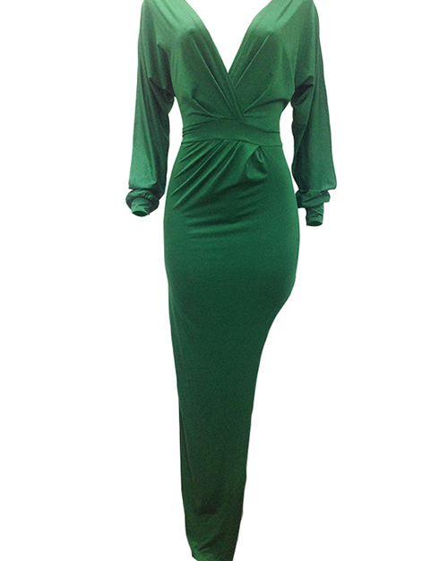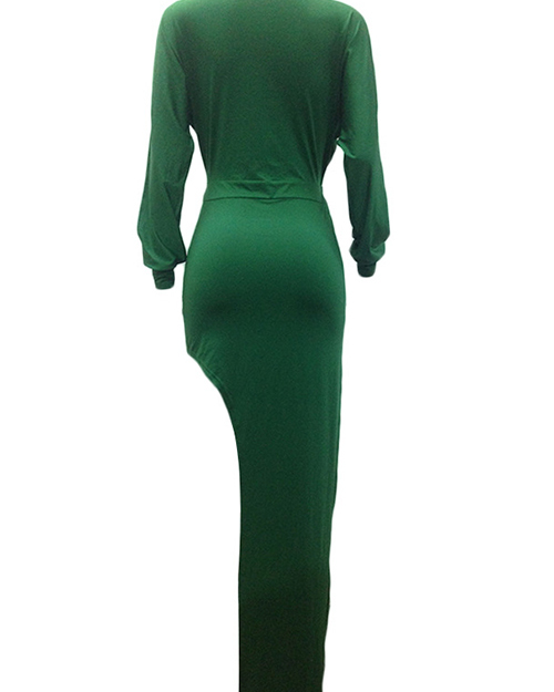 Sexy V Neck Irregular Patchwork Green Milk Fiber Floor Length Dress
