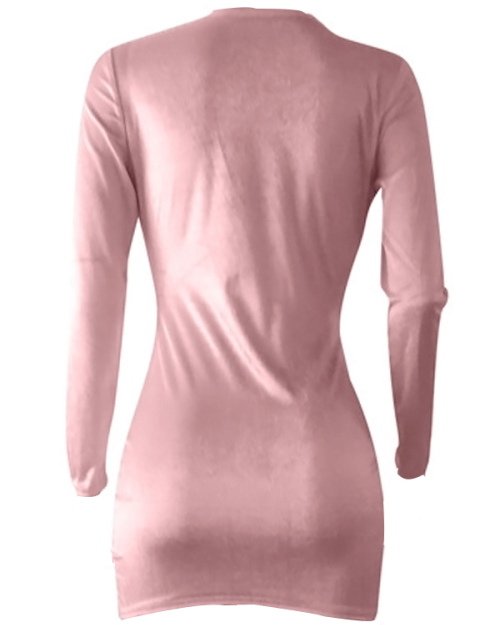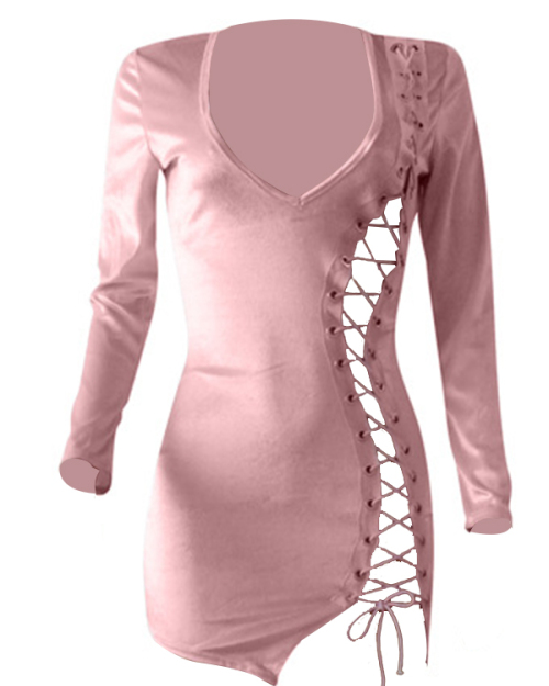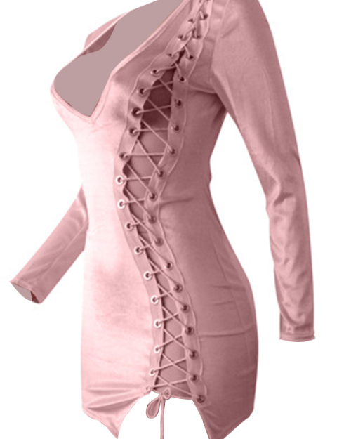 Sexy V Neck Lace-up Hollow-out Pink Velvet Mini Dress