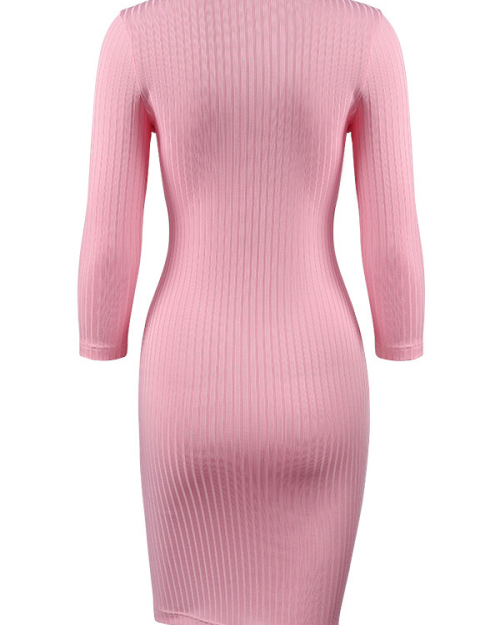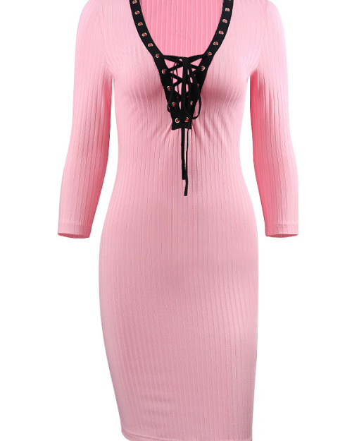 Sexy V Neck Lace-up Pink Polyester Knee Length Dress