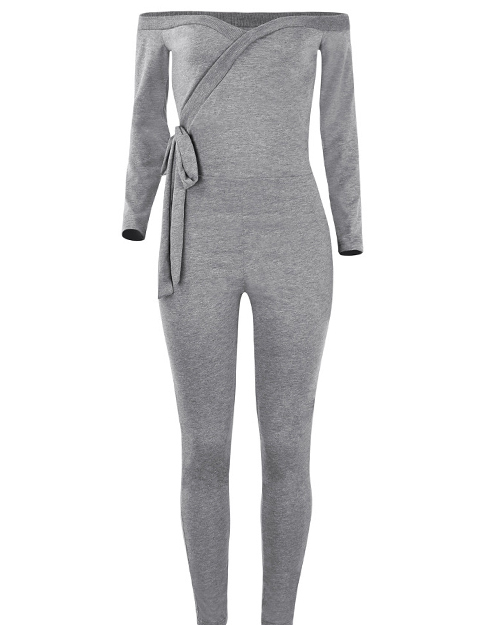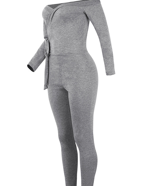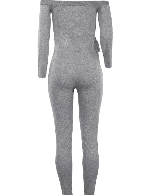 Sexy V Neck Lacing Design Light Grey Cotton Blends One-piece Jumpsuits