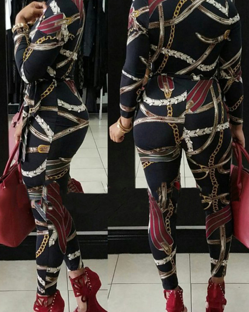 Sexy V Neck Printed Black Polyester One-piece Jumpsuits