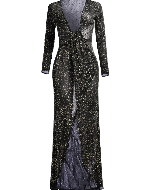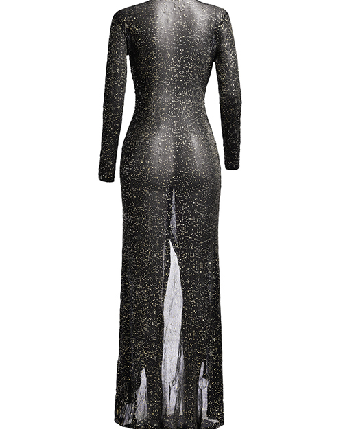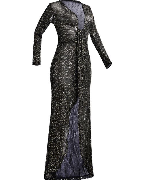 Sexy V Neck Side Slit See-Through Black Polyester Floor Length Dress(Without Briefs)