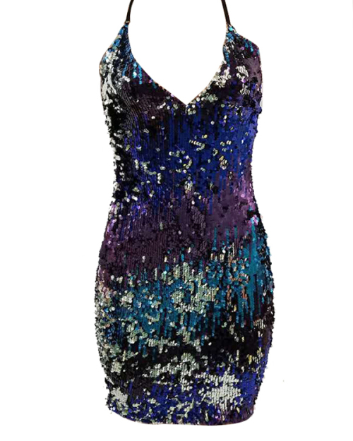 Sexy V Neck Sleeveless Gradient Printed Polyester Mini Dress