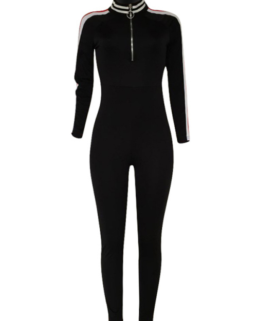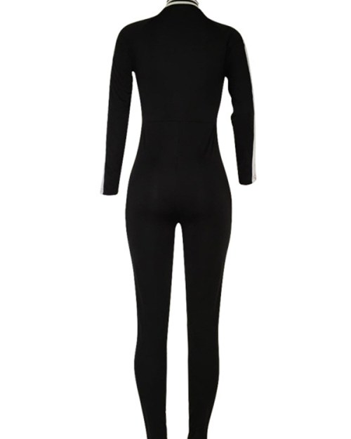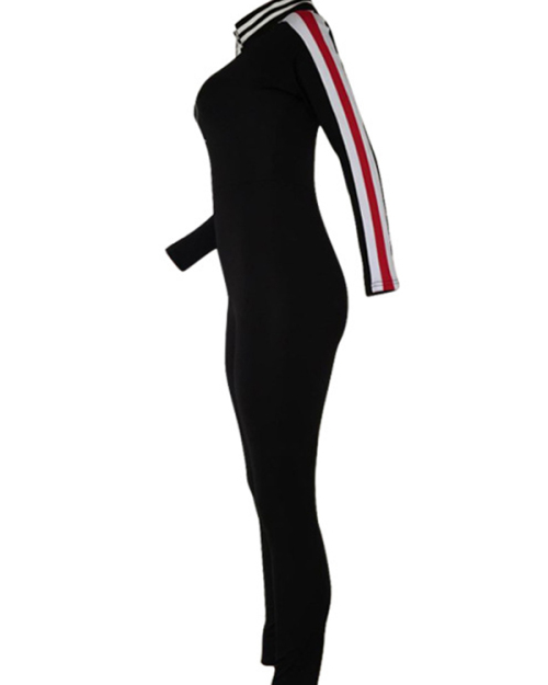 Sexy V Neck Striped Patchwork Black Cotton Blends One-piece Jumpsuits