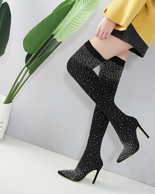 Explosion nightclub high heels pointed on the high-heeled boots shiny #95008